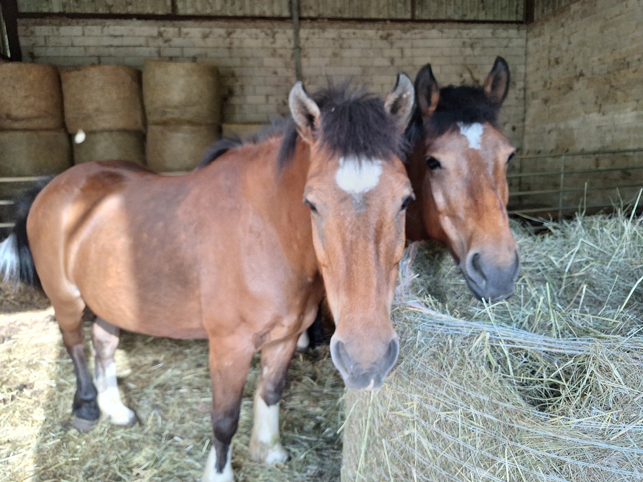Juments habituées a vivre dehors avec abri.